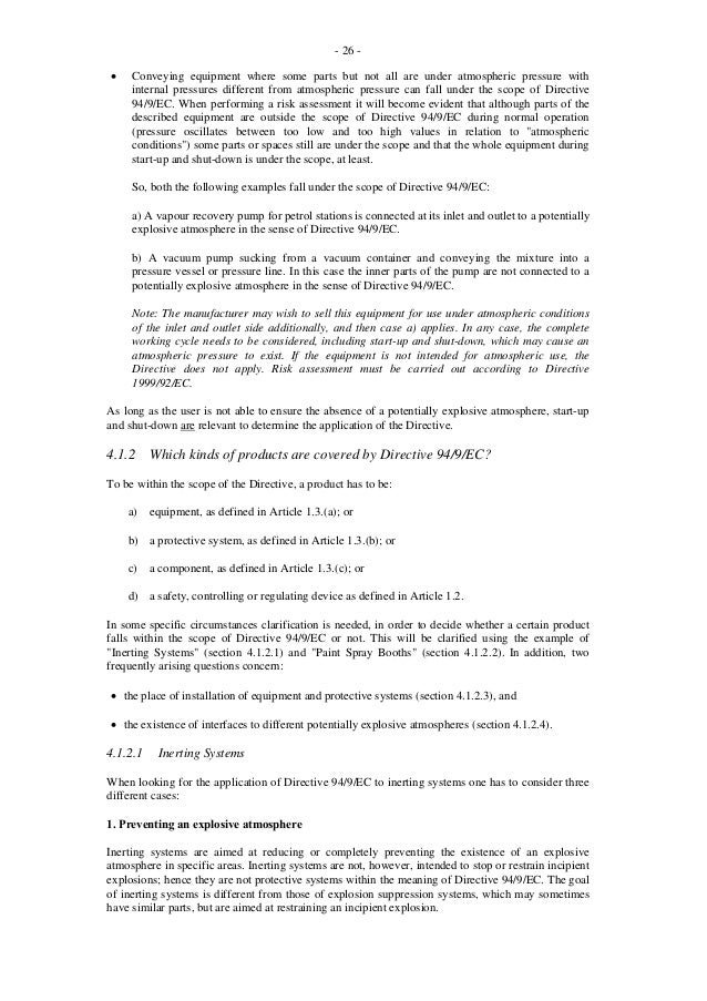 Directive 94/9/EC, commonly referred to as ATEX ("Atmosphères Explosibles") Products Directive. Readers' attention is drawn to the fact that this guide is intended only to facilitate the application of Directive 94/9/EC and it is the relevant national transposition of the text of the Directive which is legally binding. ... View Doc